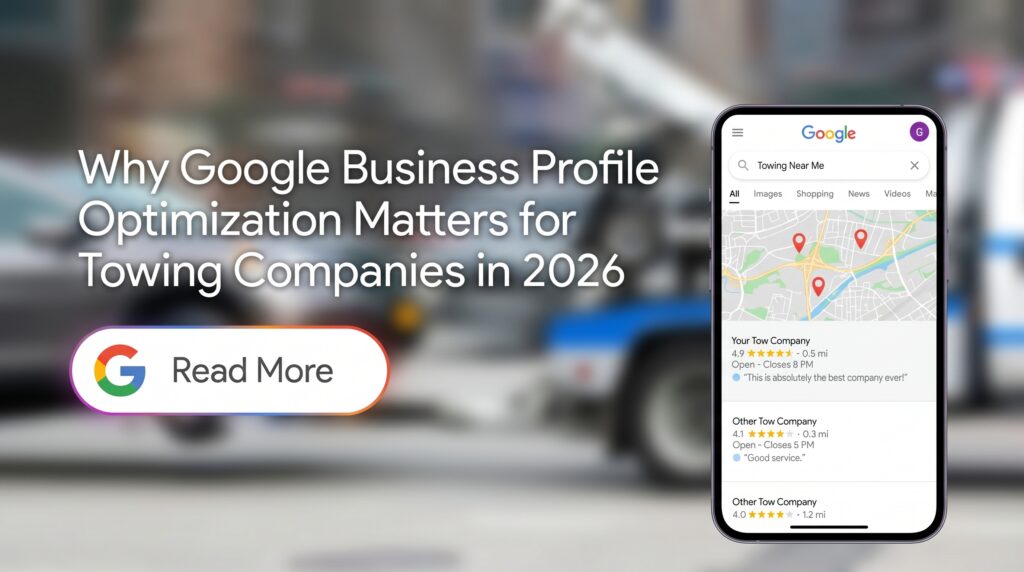 Blog Google Business Profile Optimization for Towing Companies April 27, 2026 admin When a driver is stranded on the highway at 2 a.m. with a blown tire and a dead engine, they are not scrolling through a website. They are typing “tow truck near me” into Google and calling the first name that appears. That split-second decision, made under stress, made fast, is won or lost entirely by your Google Business Profile (GBP). For towing companies, a fully optimized GBP is not a marketing nicety. It is the single most direct line between a customer’s emergency and your phone ringing. In 2026, with Google tightening its local search algorithms and local competition fiercer than ever, simply claiming a profile is no longer enough. This guide breaks down exactly why GBP optimization matters for towing companies and how to use it to outrank every competitor in your service area. Towrankers helps your business get seen where it matters most. What Is a Google Business Profile, and Why Towing Companies Cannot Afford to Ignore It ? A Google Business Profile is a free listing that controls how your towing business appears across Google Search and Google Maps. When someone searches for roadside assistance or emergency towing, Google displays the top three results directly below the map, a feature known as the Local Pack or Map Pack. Every result in that pack is a GBP listing. Your profile surfaces your business name, phone number, address, hours of operation, photos, reviews, and star rating, all before a potential customer ever visits your website. It is your digital storefront for the highest-intent traffic that exists: people who need help right now. Customers searching “24-hour towing: or “flatbed tow near me” are not browsing. They are ready to call. A weak or incomplete GBP means those calls go directly to a competitor who had the foresight to optimize theirs. How Google Decides Which Towing Companies Rank First ? Google uses three core local ranking factors to decide which businesses appear in the Map Pack. Understanding all three is the foundation of any serious optimization strategy. Relevance It measures how well your GBP matches what the searcher is looking for. This is driven by your business categories, service descriptions, and the keywords embedded in your profile content. Selecting the right primary category, such as “Towing service,” and adding accurate secondary categories like “Roadside assistance,” “Heavy equipment hauling,” or “Truck rental agency” tells Google precisely what your business does. Distance Distance refers to how close your towing company is to the person searching. While you cannot move your yard, you can optimize your service area settings inside GBP to define the geographic zones you cover. This signals to Google where your listing should appear, extending your relevance beyond your immediate address. Prominence It reflects how well-known and trusted your business is online. It is shaped by the volume and quality of your customer reviews, the number and consistency of your online directory and citation listings (Yelp, BBB, Yellowpages, and others), and the authority of your website link attached to your GBP. Profile Verification: The Step Most Towing Companies Get Wrong Before any optimization can take effect, your GBP must be verified. Google offers several verification methods: postcard, phone, email, and, increasingly for towing companies, video verification. Video verification is Google’s newer, more rigorous method, and it is becoming the standard for service-area businesses in high-risk categories, and towing falls squarely into that bracket. The process requires a live video walkthrough showing your tow trucks, equipment, and business location. Every detail in the video must match what is listed on your profile exactly. Getting verification wrong wastes weeks. Repeated failures can trigger a profile suspension, removing your business from Google Maps until reinstatement, a process that can take weeks or longer. Towing companies face suspension at higher rates than most categories due to the volume of fraudulent listings in the space. Verification precision is protective, not optional. The GBP Features That Actually Drive Towing Calls Once verified, your profile becomes a live marketing engine, but only if every feature is actively used. Business categories and attributes are the most underused ranking tools in GBP. Beyond your primary category, Google allows you to add specific GBP attributes such as 24-hour emergency service, accepted payment methods, and accessibility features. These attributes directly affect which searches your profile qualifies for. Photos and video content are your proof of credibility at the moment of decision. Upload high-resolution images of your tow trucks, drivers, and equipment. More importantly, publish before and after job photos; these outperform generic fleet shots for conversion because they demonstrate active capability rather than passive presence. Google Posts keep your profile current. Regular updates, whether announcing seasonal service availability, promoting a flat-rate offer, or highlighting winter roadside assistance, signal to Google that your profile is active. Active profiles consistently rank higher than dormant ones. The Q&A section is a public trust surface that most towing companies ignore entirely. Proactively seeding it with common questions (“Do you offer 24-hour towing?”, “What areas do you cover?”, “Do you tow motorcycles?”) and answering them yourself turns a neglected feature into a keyword-rich conversion tool. GBP messaging allows customers to text your business directly from the listing for non-urgent inquiries, scheduling, pricing questions, or transport requests. Enabling it and responding promptly signals a response time that customers factor heavily into their decision to call. Reviews, Reputation, and the E-E-A-T Framework In an industry where customers a